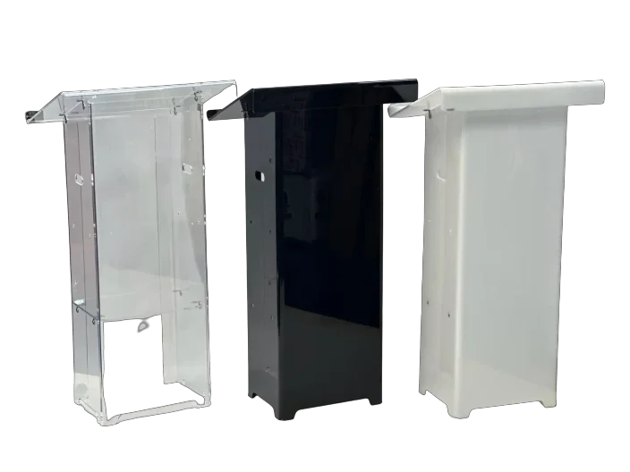 פודיום נואם מפרספקס ייחודי לדונטלו בשלושה צבעים עבור נואמים, דוברים, מציגים וקבלת פנים.