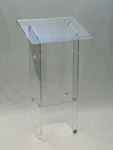 פודיום נואם מפרספקס ייחודי לדונטלו בשלושה צבעים עבור נואמים, דוברים, מציגים וקבלת פנים.