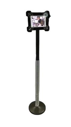 מעמד לטאבלט להשכרה – עמוד שחור עם בסיס "בועה" יציב (גובה 140 ס"מ)