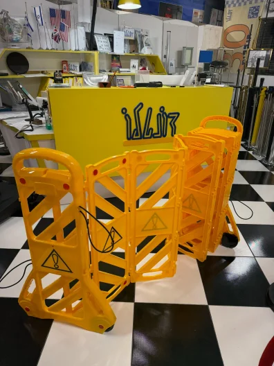 מחסום אקורדיון (פרגוד) פלסטיק נייד עם גלגלים – פתרון מתקדם לתיחום והפרדה